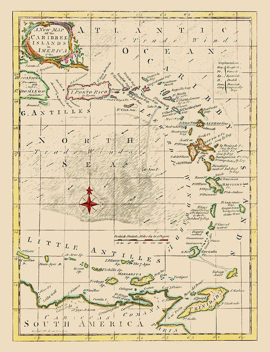 Caribbean Islands - Smollett 1761 White Modern Wood Framed Art Print with Double Matting by Smollett
