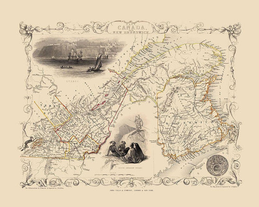 Nova Scotia Newfoundland Canada - Tallis 1851 White Modern Wood Framed Art Print with Double Matting by Tallis
