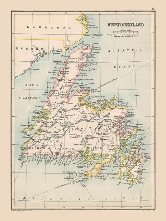Newfoundland Canada - Bartholomew 1892 White Modern Wood Framed Art Print with Double Matting by Bartholomew