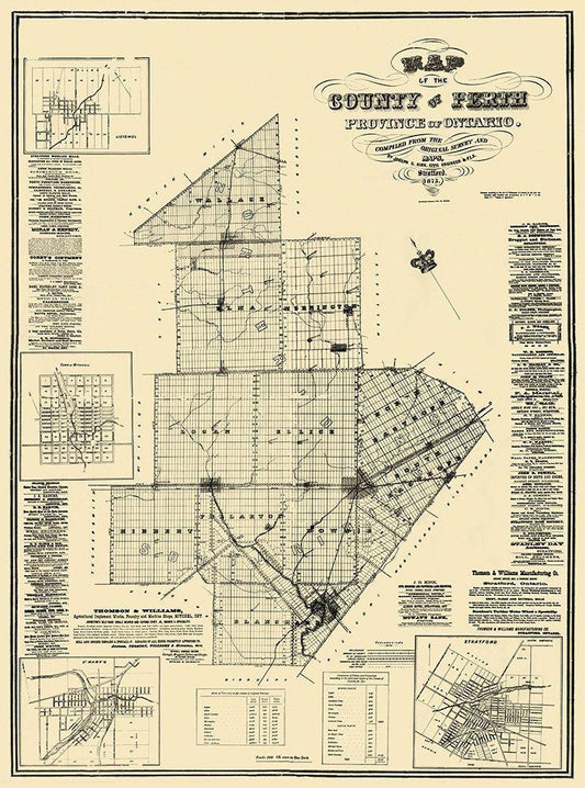 Perth County Ontario Canada - Kirk 1875 White Modern Wood Framed Art Print with Double Matting by Kirk
