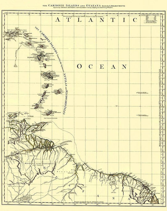 Caribbean Islands Guyana - Jefferys 1775 White Modern Wood Framed Art Print with Double Matting by Jefferys