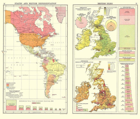 British Trade United Kingdom - Bartholomew 1907 White Modern Wood Framed Art Print with Double Matting by Bartholomew