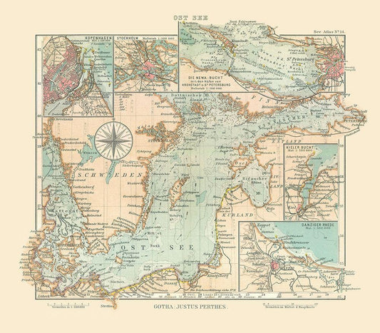 Baltic Sea Sweden Denmark Latvia - Perthes 1914 White Modern Wood Framed Art Print with Double Matting by Perthes