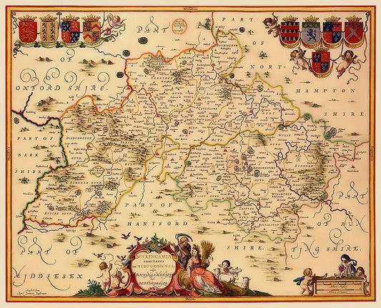 Buckinghamshire County England - Jansson 1646 White Modern Wood Framed Art Print with Double Matting by Jansson