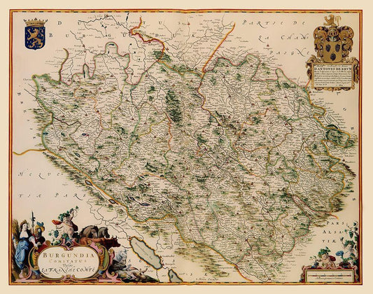 Burgundy Region France - Blaeu 1662 White Modern Wood Framed Art Print with Double Matting by Blaeu