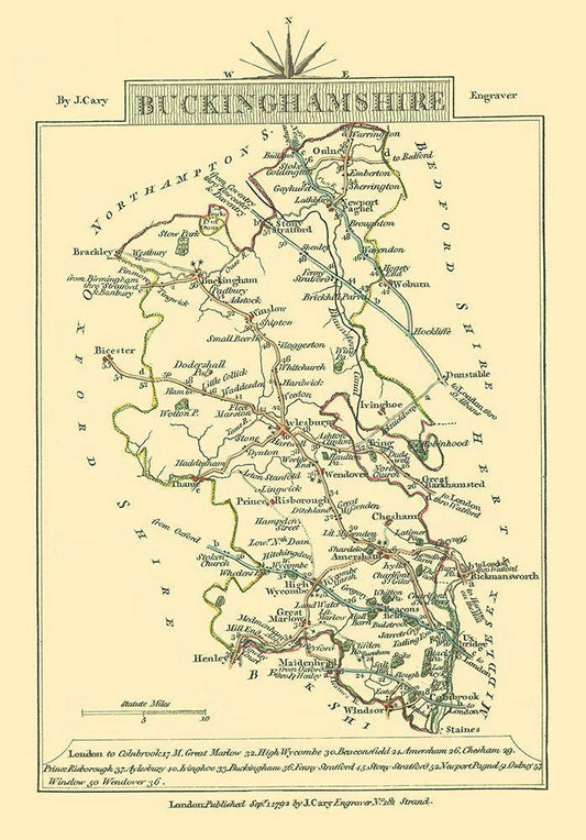 Buckinghamshire County England - Cary 1792 White Modern Wood Framed Art Print with Double Matting by Cary