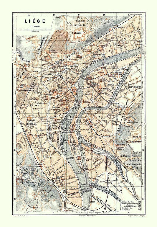 Liege Belgium Europe - Baedeker 1910 White Modern Wood Framed Art Print with Double Matting by Baedeker