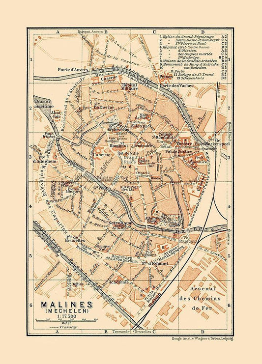 Mechelen Belgium Europe - Baedeker 1910 White Modern Wood Framed Art Print with Double Matting by Baedeker
