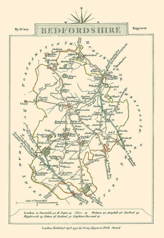 Bedfordshire County England - Cary 1792 White Modern Wood Framed Art Print with Double Matting by Cary