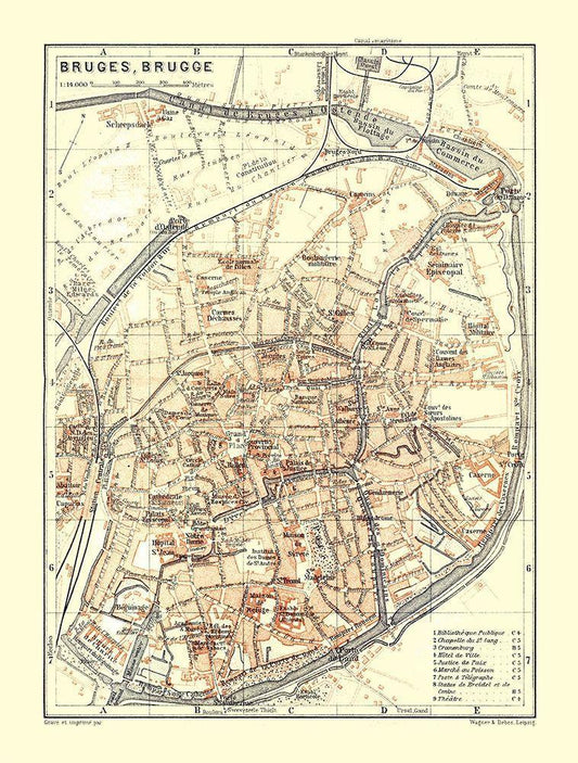Bruges Belgium Europe - Baedeker 1910 White Modern Wood Framed Art Print with Double Matting by Baedeker