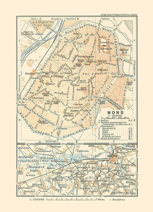 Mons Belgium Europe - Baedeker 1910 White Modern Wood Framed Art Print with Double Matting by Baedeker