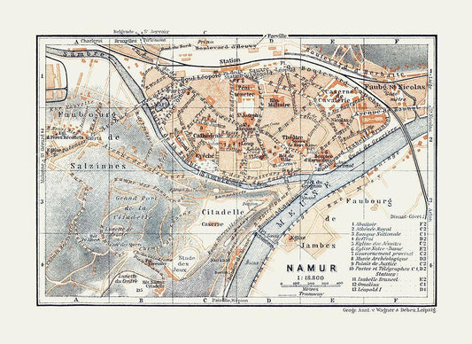 Namur Belgium Europe - Baedeker 1910 White Modern Wood Framed Art Print with Double Matting by Baedeker