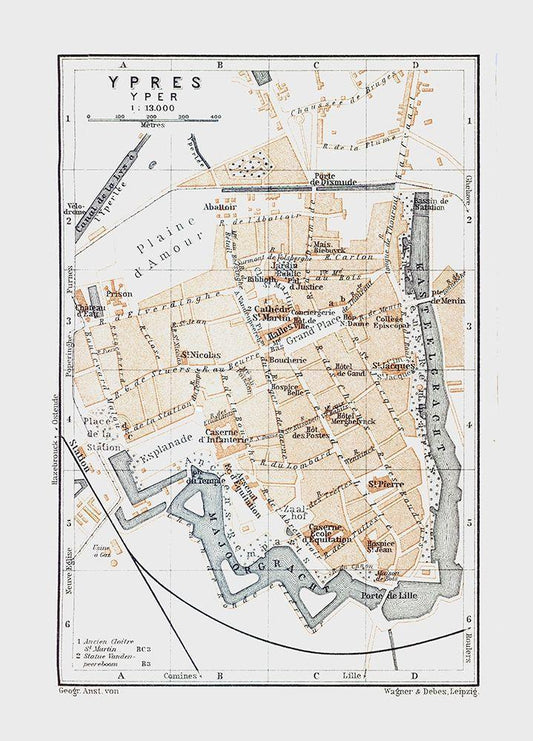 Ypres Belgium Europe - Baedeker 1910 White Modern Wood Framed Art Print with Double Matting by Baedeker