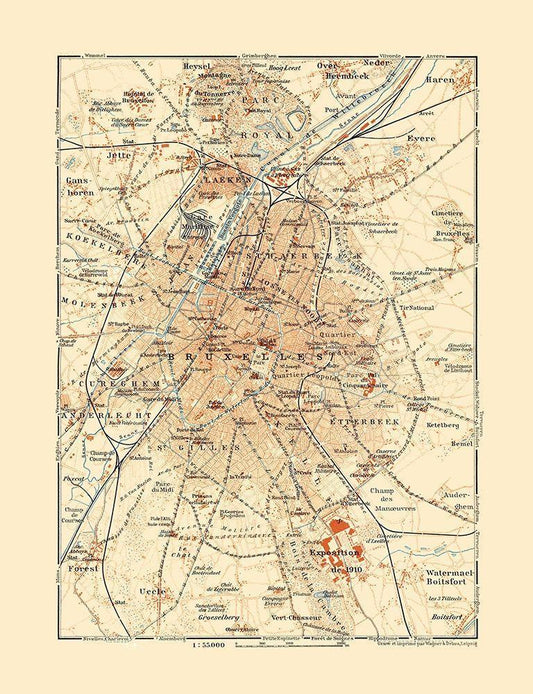 Brussels Belgium Europe - Baedeker 1910 White Modern Wood Framed Art Print with Double Matting by Baedeker