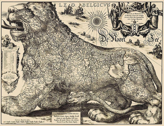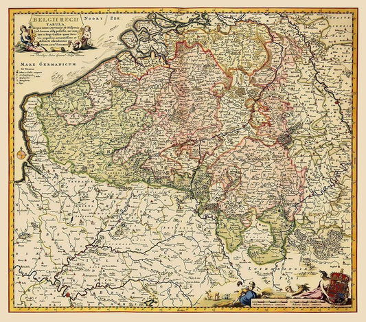 Benelux Belgium - Visscher 1684 White Modern Wood Framed Art Print with Double Matting by Visscher