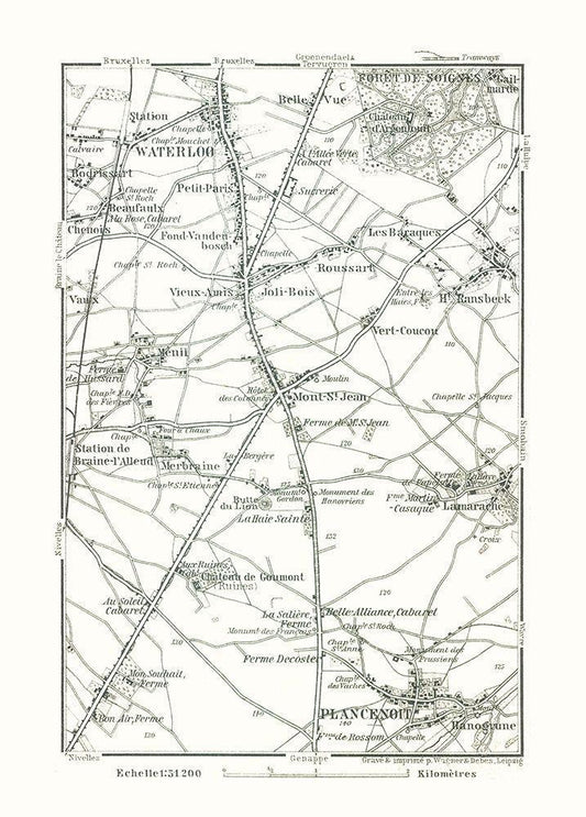 Waterloo Plancenoit Belgium Europe - Baedeker 1910 White Modern Wood Framed Art Print with Double Matting by Baedeker