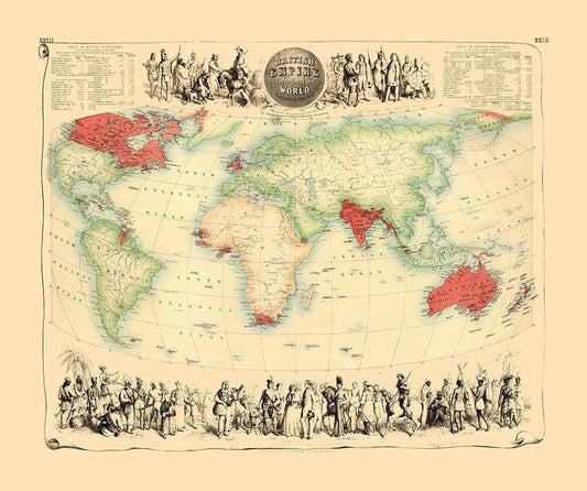 British Empire Throughout World - Bartholomew 1872 White Modern Wood Framed Art Print with Double Matting by Bartholomew