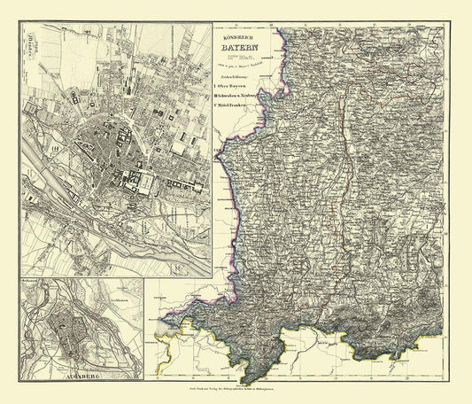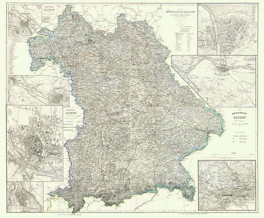 Bavaria Region Germany - Weiland 1856 White Modern Wood Framed Art Print with Double Matting by Weiland