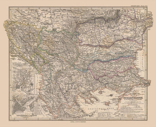 Balkan Peninsula Europe - Stieler 1885 White Modern Wood Framed Art Print with Double Matting by Stieler