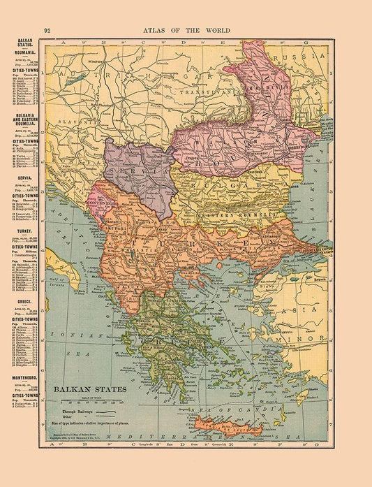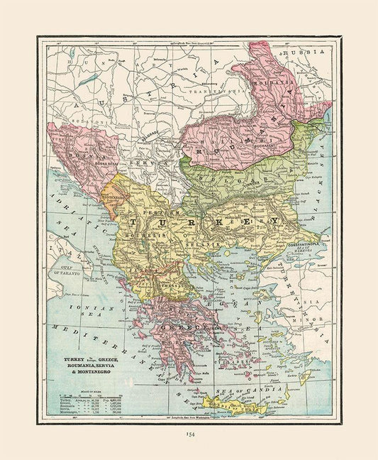 Turkey Greece Romania Serbia - Cram 1892 White Modern Wood Framed Art Print with Double Matting by Cram