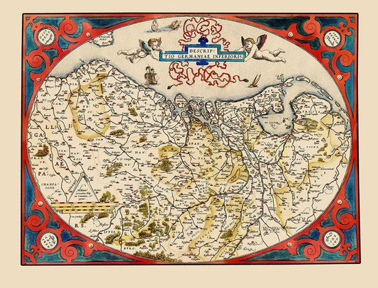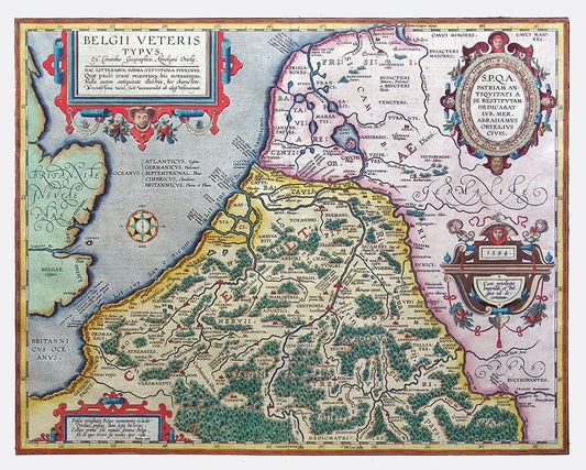 Ancient Belgium 1594 Europe - Ortelius 1570 White Modern Wood Framed Art Print with Double Matting by Ortelius