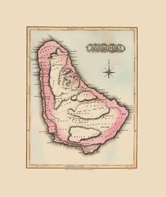 Barbados - Lucas 1823 White Modern Wood Framed Art Print with Double Matting by Lucas