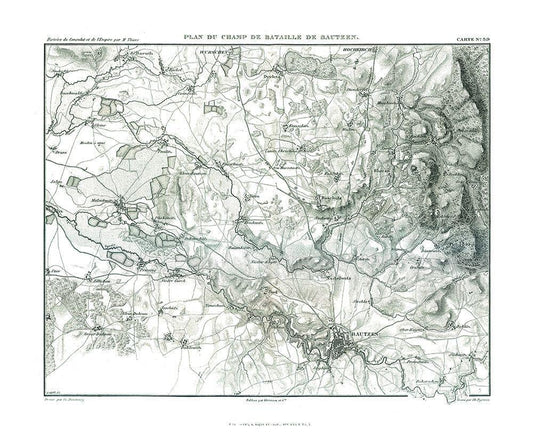 Battle of Bautzen Field Plan - Thiers 1866 White Modern Wood Framed Art Print with Double Matting by Unknown