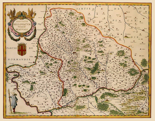 Beauvais Region France - Blaeu 1638 White Modern Wood Framed Art Print with Double Matting by Blaeu