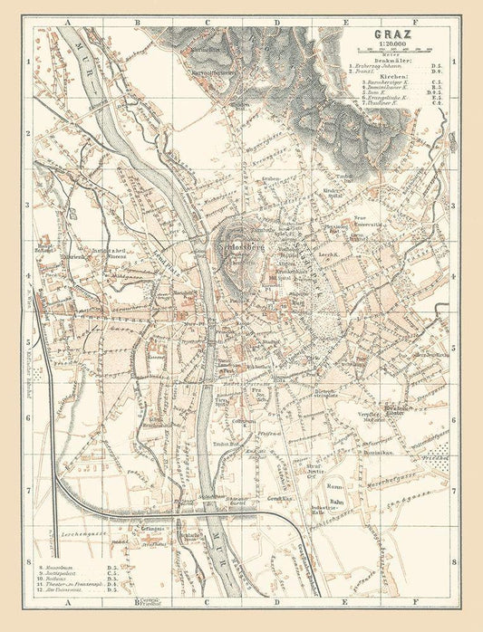 Graz Austria - Baedeker 1896 White Modern Wood Framed Art Print with Double Matting by Baedeker