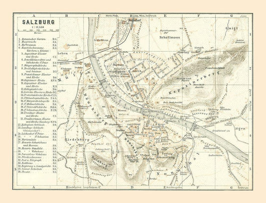 Salzburg Austria - Baedeker 1896 White Modern Wood Framed Art Print with Double Matting by Baedeker