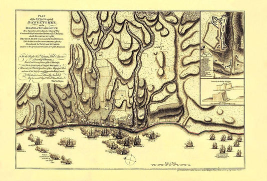 Attack Basseterre on Island Guadeloupe France White Modern Wood Framed Art Print with Double Matting by Jefferys