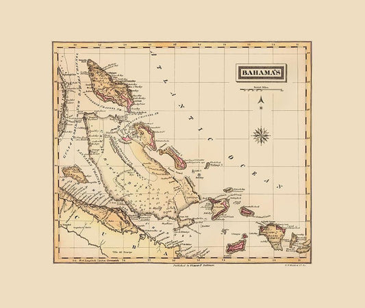 Bahamas Bermuda Cuba Islands - Thomson 1829 White Modern Wood Framed Art Print with Double Matting by Thomson