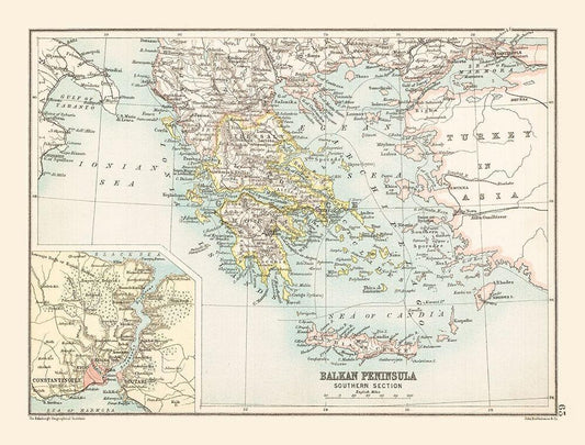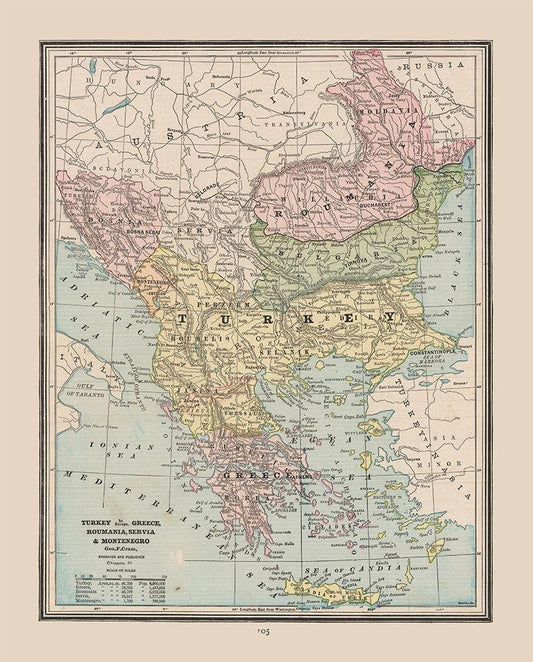 Turkey Greece Romania Serbia - Cram 1888 White Modern Wood Framed Art Print with Double Matting by Cram