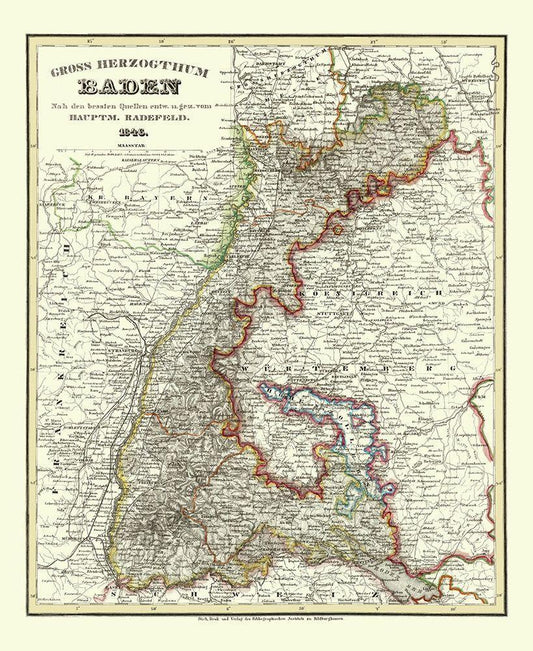 Baden Wurttemberg Germany - Radefeld 1860 White Modern Wood Framed Art Print with Double Matting by Radefeld