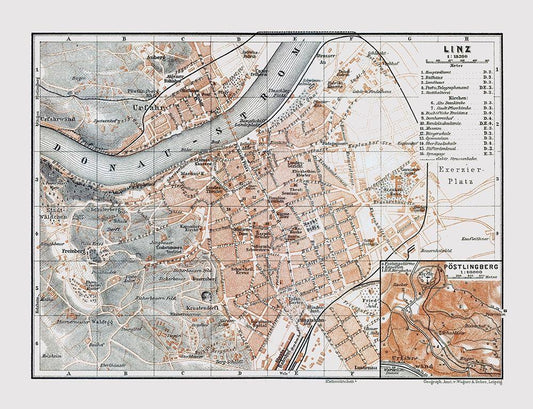 Linz Austria - Baedeker 1896 White Modern Wood Framed Art Print with Double Matting by Baedeker
