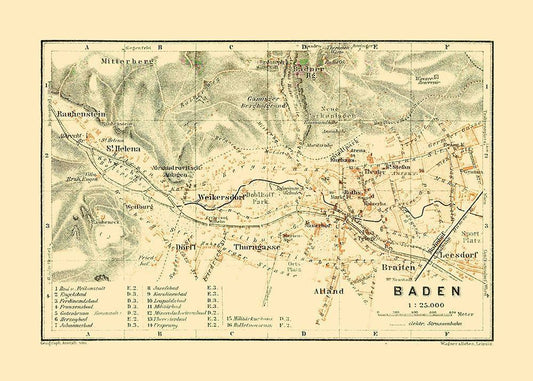 Baden Austria - Baedeker 1910 White Modern Wood Framed Art Print with Double Matting by Baedeker