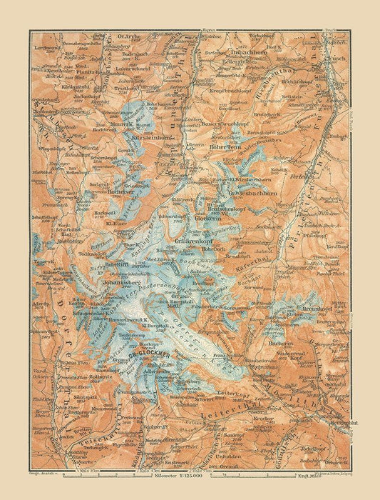 Mitter Pinzgau Region Austria - Baedeker 1910 White Modern Wood Framed Art Print with Double Matting by Baedeker