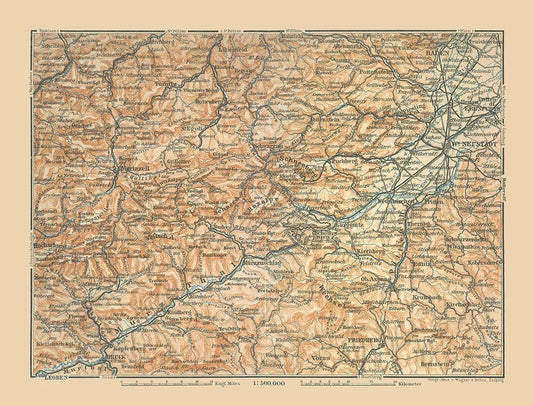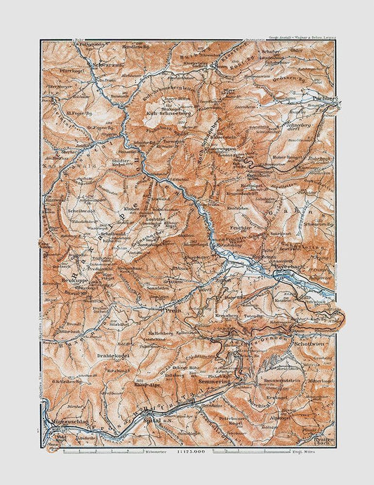 Hollen Geb Region Austria - Baedeker 1896 White Modern Wood Framed Art Print with Double Matting by Baedeker