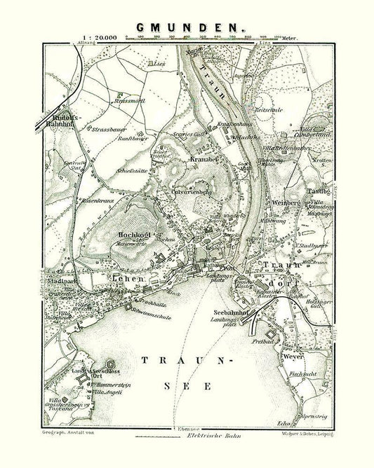 Gmunden Austria - Baedeker 1896 White Modern Wood Framed Art Print with Double Matting by Baedeker