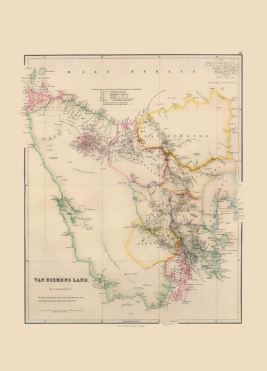 Australia Van Diemens Land Tasmania White Modern Wood Framed Art Print with Double Matting by Arrowsmith