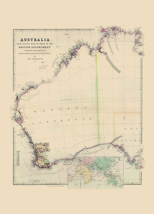 Australia Western Surveys - Arrowsmith 1844 White Modern Wood Framed Art Print with Double Matting by Arrowsmith
