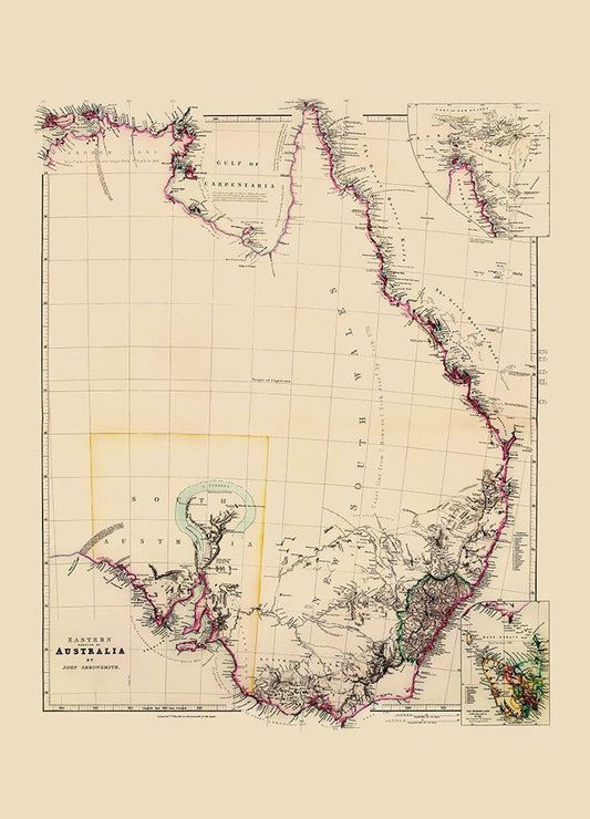 Eastern Australia - Arrowsmith 1844 White Modern Wood Framed Art Print with Double Matting by Arrowsmith