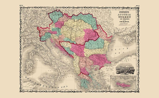 Austria Turkey Greece - Johnson 1860 White Modern Wood Framed Art Print with Double Matting by Johnson