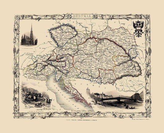 Austria - Tallis 1851 White Modern Wood Framed Art Print with Double Matting by Tallis