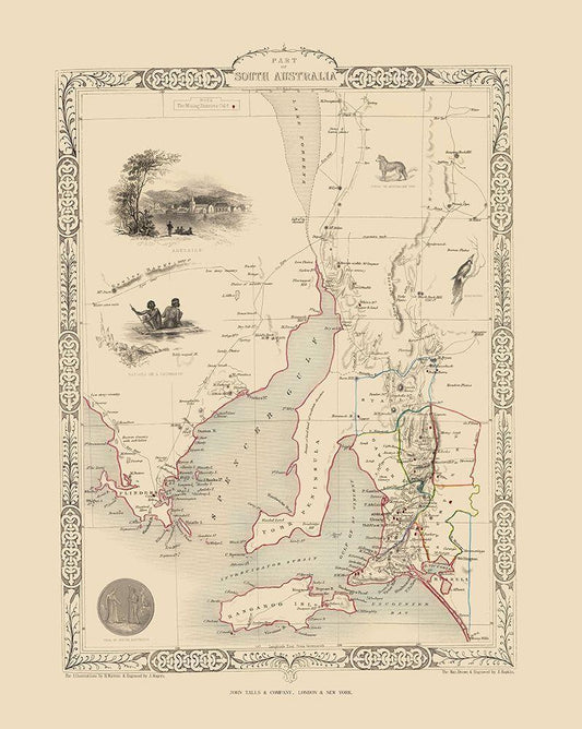 South Part Australia - Tallis 1851 White Modern Wood Framed Art Print with Double Matting by Tallis