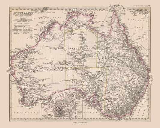 Australia - Stieler 1885 White Modern Wood Framed Art Print with Double Matting by Stieler
