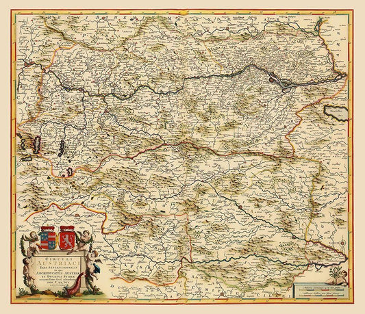 Austria - Ortelius 1570 White Modern Wood Framed Art Print with Double Matting by Ortelius