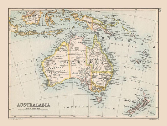 Australasia - Bartholomew 1892 White Modern Wood Framed Art Print with Double Matting by Bartholomew