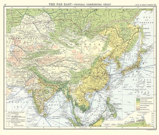 Asia Far East General Commercial Chart White Modern Wood Framed Art Print with Double Matting by Newnes