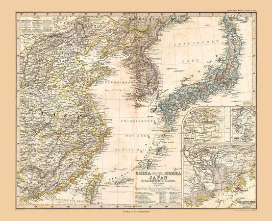 Asia China Korea Japan - Stieler 1885 White Modern Wood Framed Art Print with Double Matting by Stieler